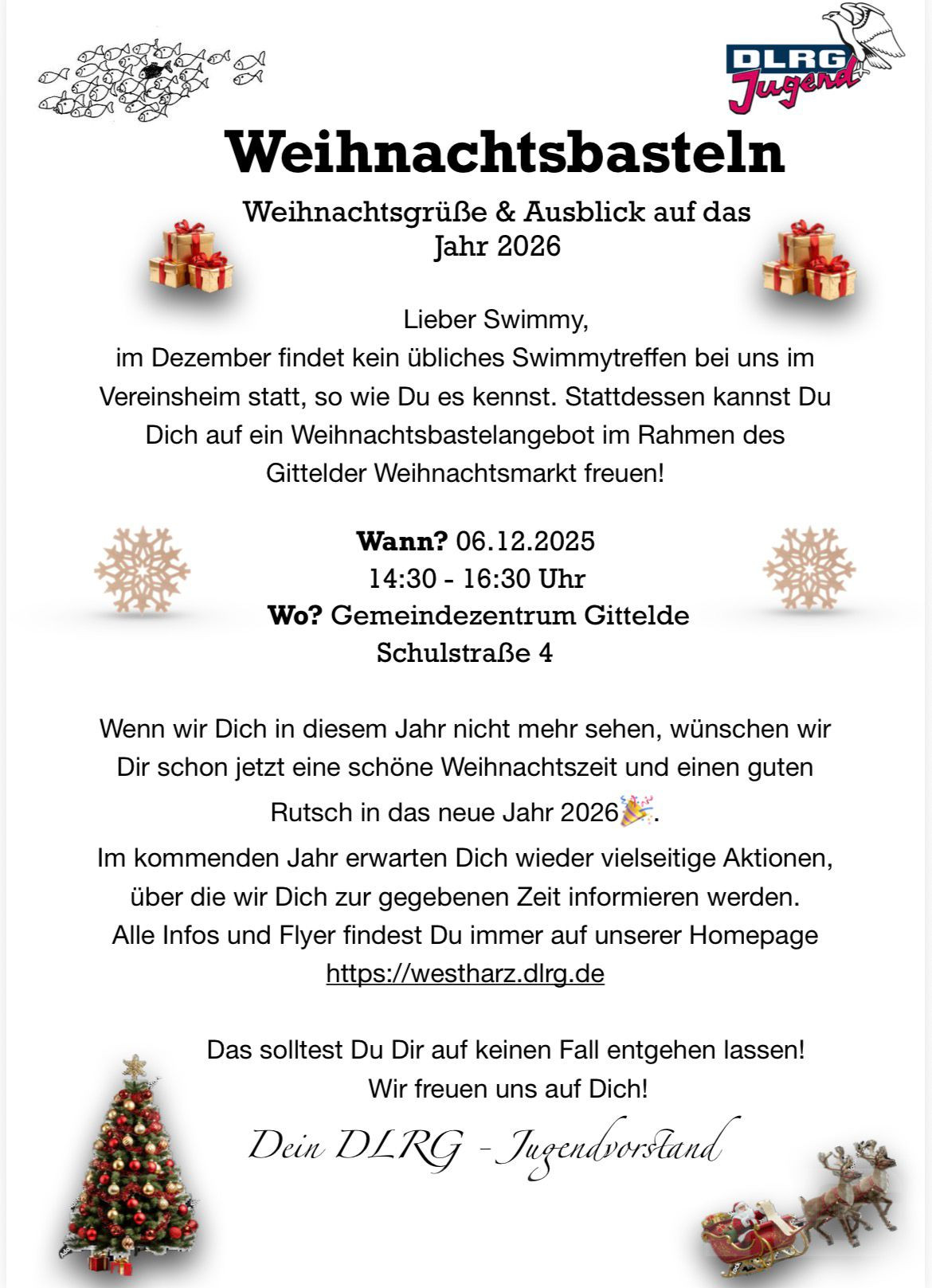 Am 06.12.2025 ist es soweit - im Rahmen des Gittelder Weihnachtsmarkt kannst Du dich auf ein Weihnachtsbastelangebot freuen!✨✏️